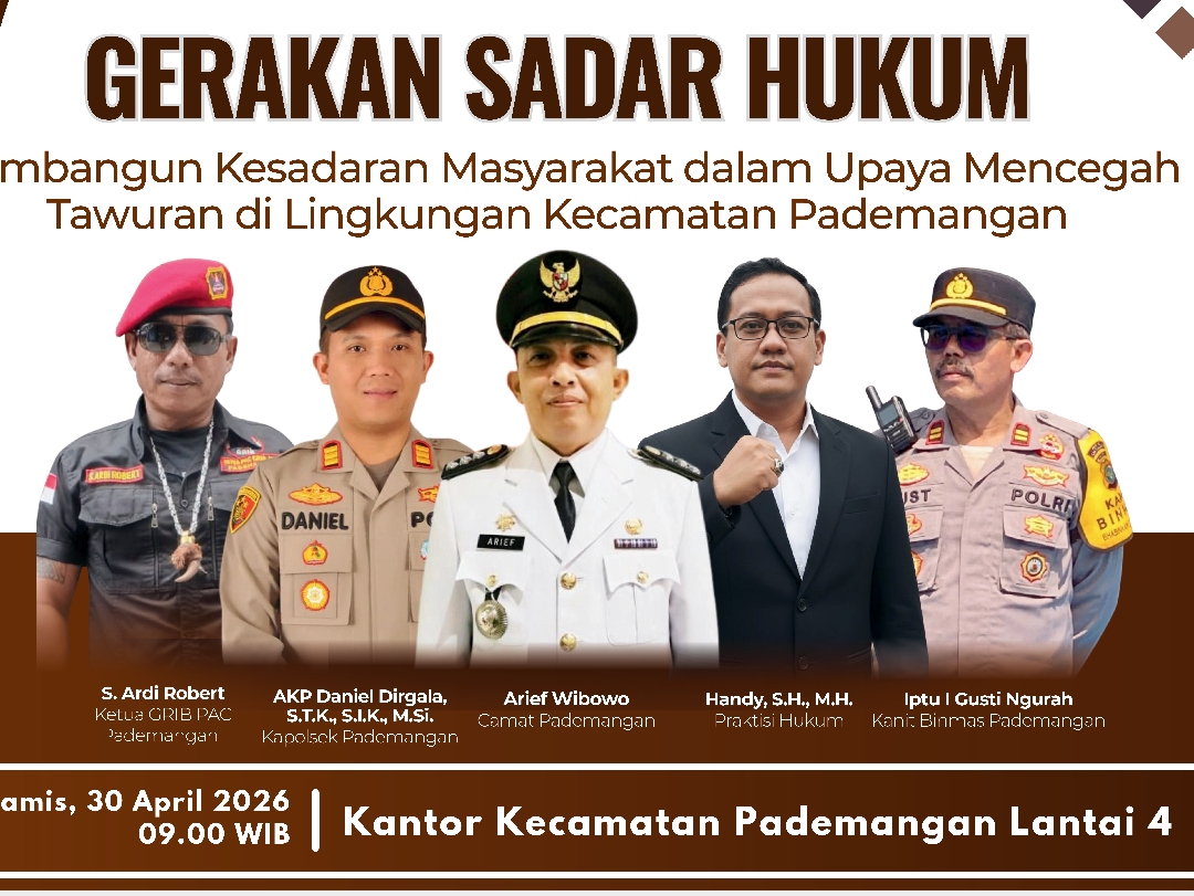 Upaya membangun kesadaran hukum di tengah masyarakat terus diperkuat melalui pendekatan edukatif dan kolaboratif. Salah satunya diwujudkan dalam kegiatan Seminar Gerakan Sadar Hukum yang digelar di Kantor Kecamatan Pademangan pada Kamis (30/4), sebagai langkah konkret menekan maraknya tawuran yang kian meresahkan.